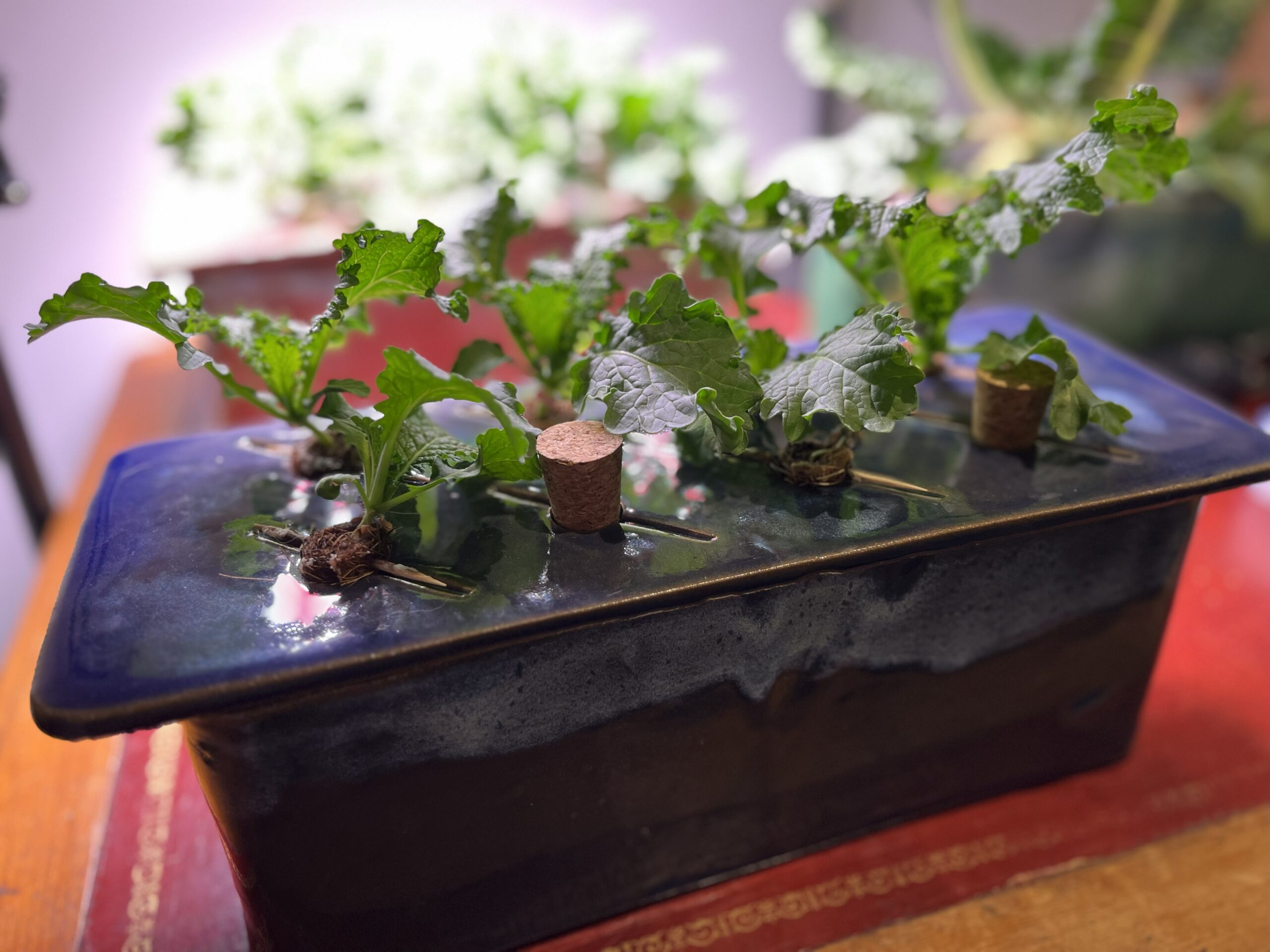 From the reservoir to the corks, ClaySprout is designed with natural materials in mind—no plastics, no cheap parts, just clay, glaze, cork, and plant life.